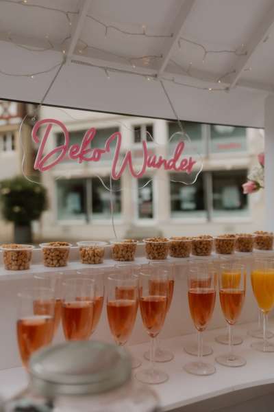 Neben unserer liebevollen gestalteten Dekoration bieten wir auch klassische Sektempfänge sowie moderne Aperitif Empfänge an - perfekt, um deine Gäste stilvoll willkommen zu heißen.