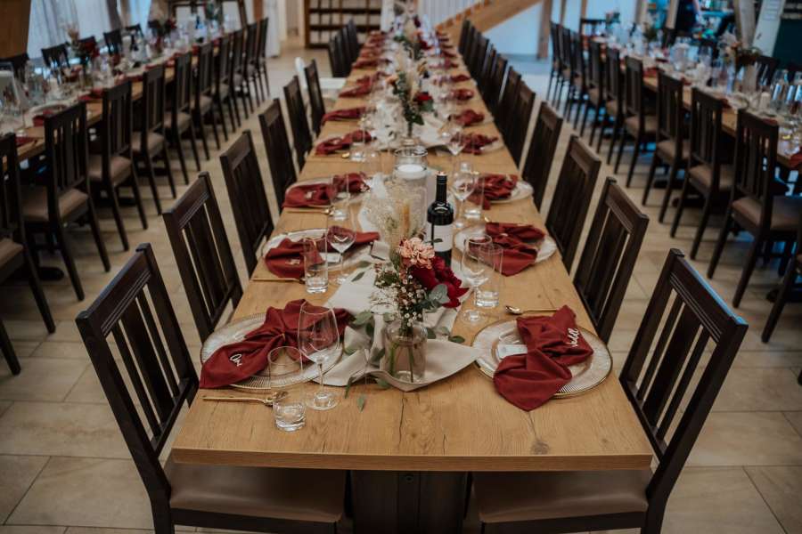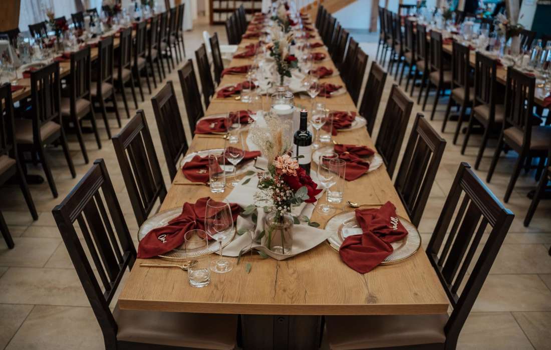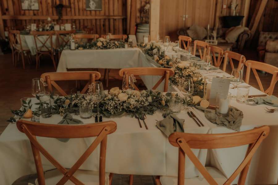 Unsere Tische sind handgefertigt, die Stühle und Vintage-Möbel wurden individuell für Euch ausgesucht.