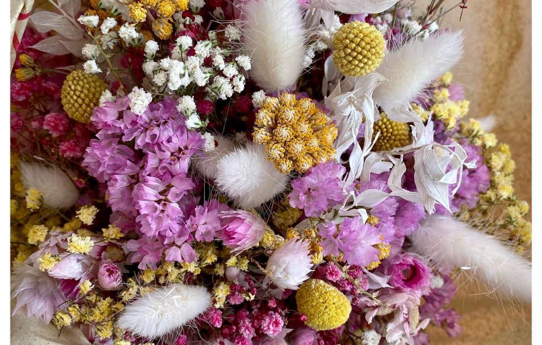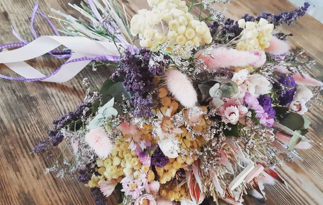Trockenblumen-Stoffblumen-Blumenwände-Tischdekoration-Trockensträuße-Eventausstatter-Dekoration-Torbögen