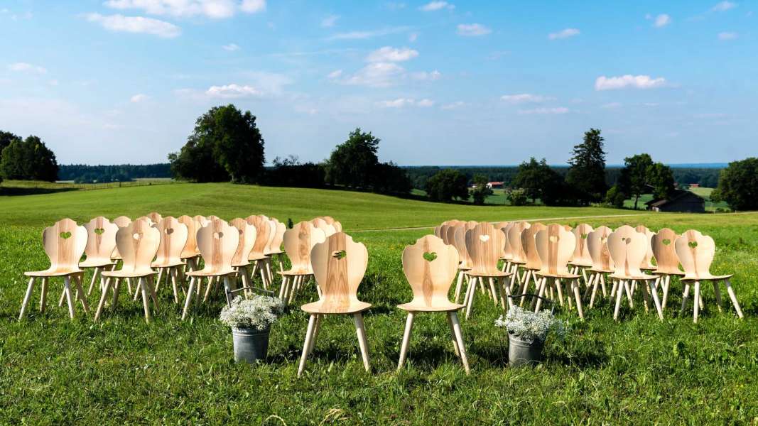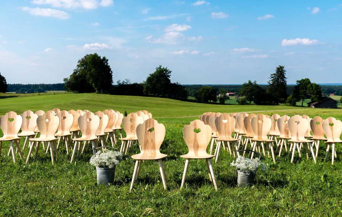 Es bedarf nicht vieler, aber der richtigen Dinge, um eine Veranstaltung unvergesslich zu machen. Ein tolles Highlight sind unsere neu-inszenierten Herzerlstühle - modern und rustikal zugleich. Ein echter Hingucker für jede Hochzeit und dazu absolut einzigartig!