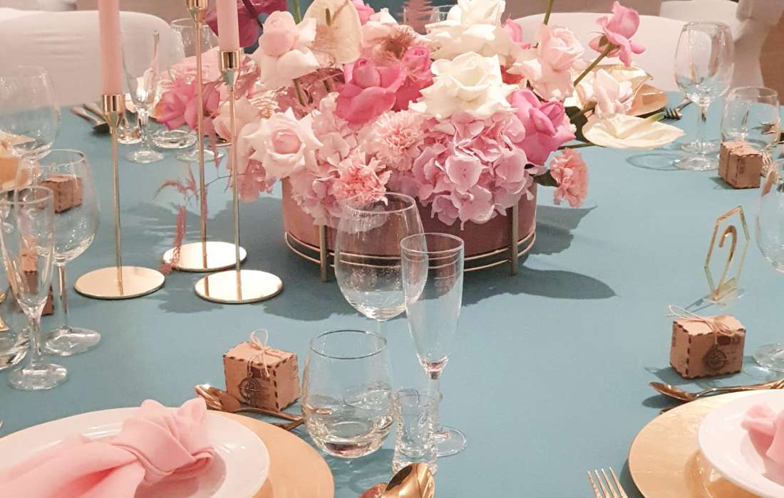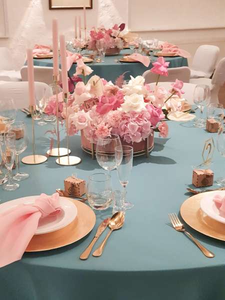 Eine Auswahl an Textilien, Backdrops, Traubögen, alles rund um die Tischdekoration und Hochzeitsfloristik, Papeterie, Beleuchtungen, Bühneninstallationen & Möbel, für Eure perfekte Hochzeitsdekoration.