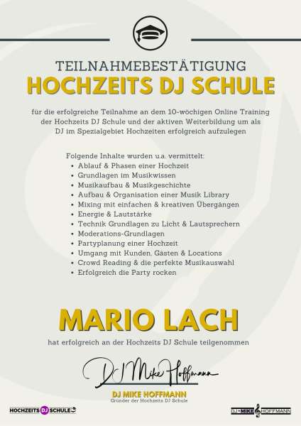 Ich bin Mario Lach – besser bekannt als DJ CMO – und seit über 20 Jahren als professioneller Hochzeits- und Event-DJ im Einsatz. Mit viel Erfahrung, dem Gespür für den perfekten Musikmix und hochwertiger Technik sorge ich für einzigartige Stimmung – ob auf Hochzeiten, Geburtstagen oder Firmenfeiern.