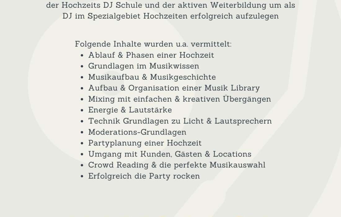 | Besonderheiten / Zusatzleistungen | Video-Aufnahmen der Highlight (4K) sowie komplette Musik des Abends als mp3 |