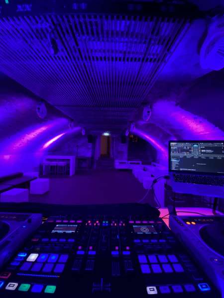 DJ-Equipment: Pioneer Opus Quad, 2 Pioneer XDJ, 4 Kanal-Mischpult, Macbook Pro und NI Kontrol S8