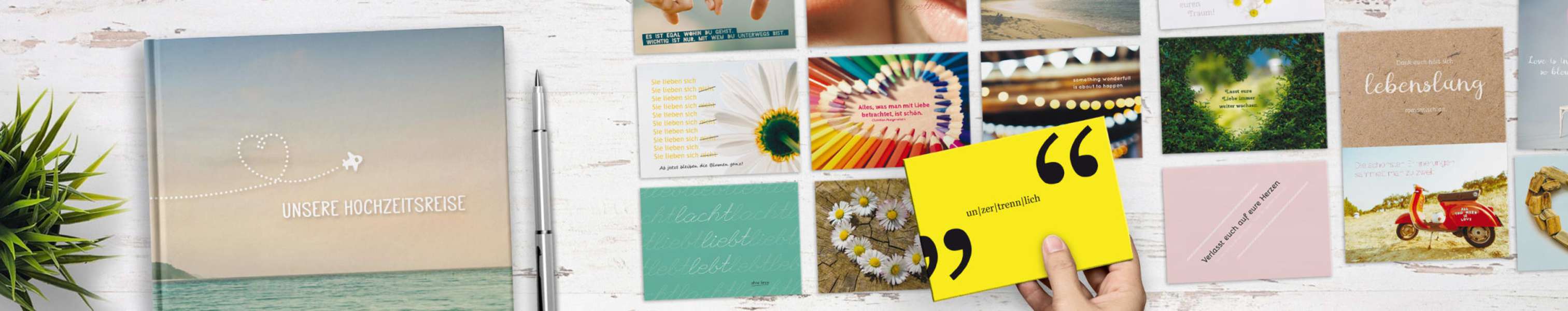 Für Hochzeiten bieten wir u.a. 52 Postkarten-Sets als Gastgeschenke oder das Reisetagebuch für die Flitterwochen - schauen Sie sich gern um...