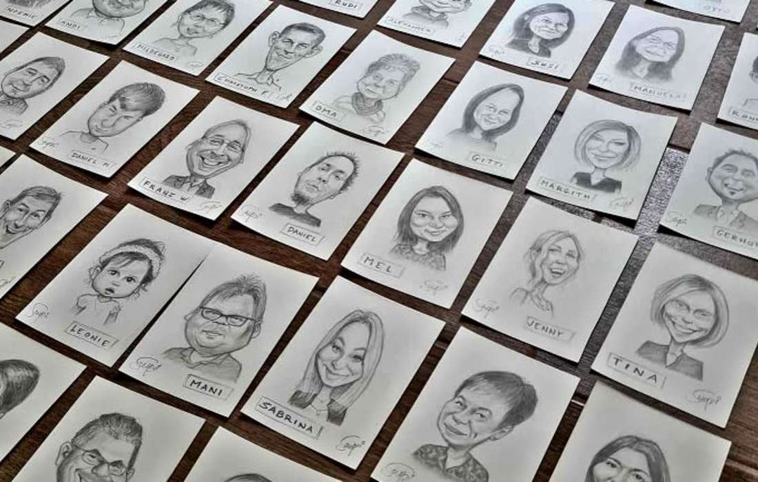 Es ist mir jedoch wichtig, dass die Zeichnungen den Gästen ähneln, sodass sich jeder wiedererkennt.