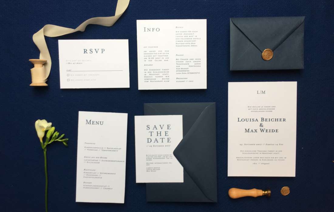 Hochzeitspapeterie von Einladungskarten über save the date bis zu individueller Gesamtkollektion