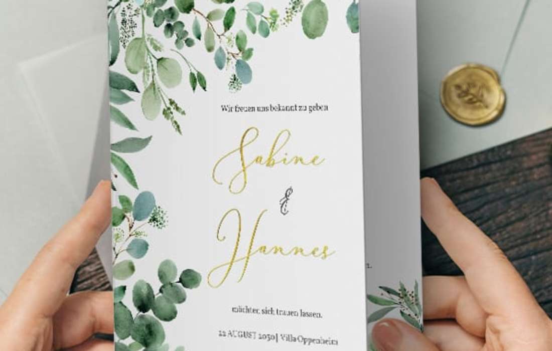 Alle Produkte auf wunderkarten kannst du ganz einfach online anpassen. Wähle aus verschiedenen Papierarten, Veredelungen, Farben und Schriftarten, um deine Karten perfekt zu gestalten. Die Druckqualität ist stets erstklassig, damit deine Hochzeitspapeterie einen bleibenden Eindruck hinterlässt.