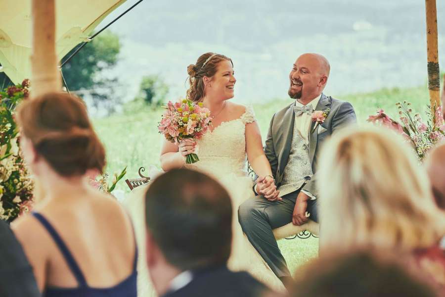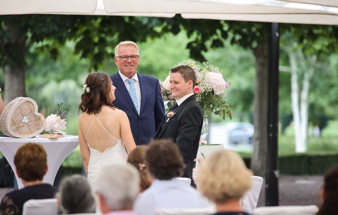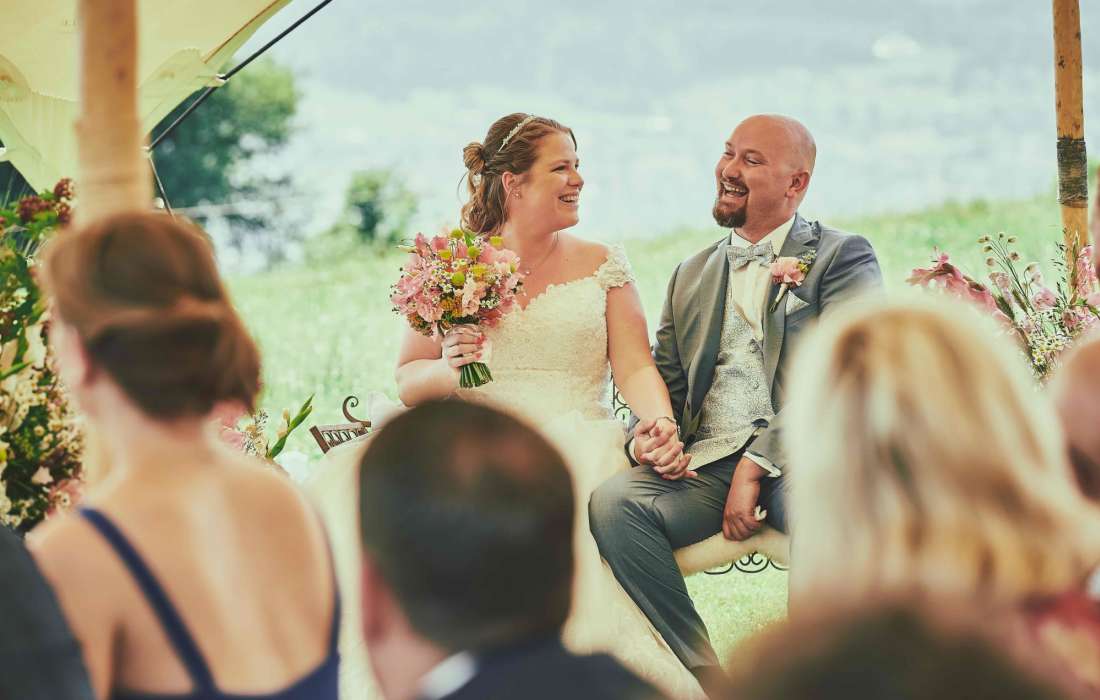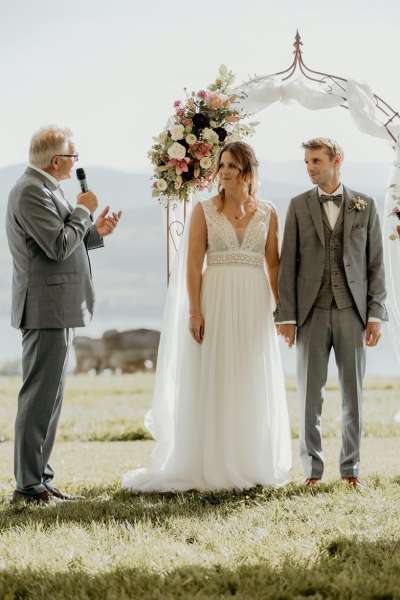 Lieber Edi, wir möchten uns für die Traurede herzlich bei dir bedanken. Der ganze Prozess vom Auswählen, den Vorbereitungsgesprächen und schlussendlich der Zeremonie waren für uns einfach perfekt. Die Zeremonie war sehr schön, das haben wir auch von unseren Gästen als Feedback erhalten. Die Dauer war super und man hat dir gerne zugehört. Deine aufgestellte positive Art hat perfekt zu uns gepasst. Vielen herzlichen Dank!