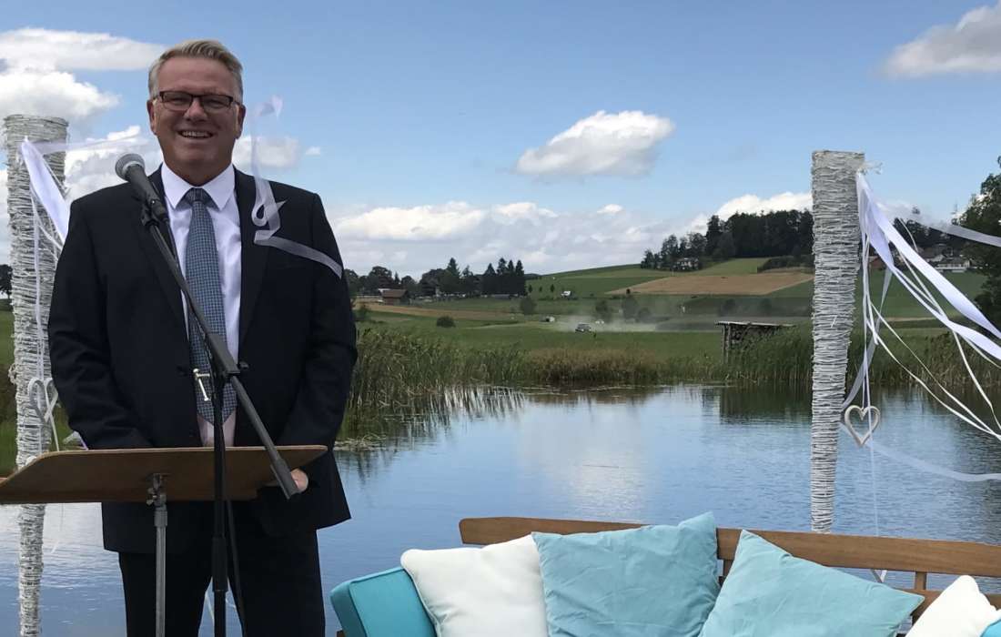 Lieber Edi Wir möchten uns für deine Traurede bei unserer Traumhaften Hochzeit bedanken. Es war wunderschön, emotional und die richtige Portion Humor. Du machst deinen Job mit unglaublicher Leidenschaft und das ist sehr schön zu sehen. Wir und all unsere Gäste waren begeistert. Wir würden dich jederzeit weiterempfehlen, du hast ein Grossteil dazu beigetragen, dass unser Tag perfekt war. Von herzen vielen lieben Dank.