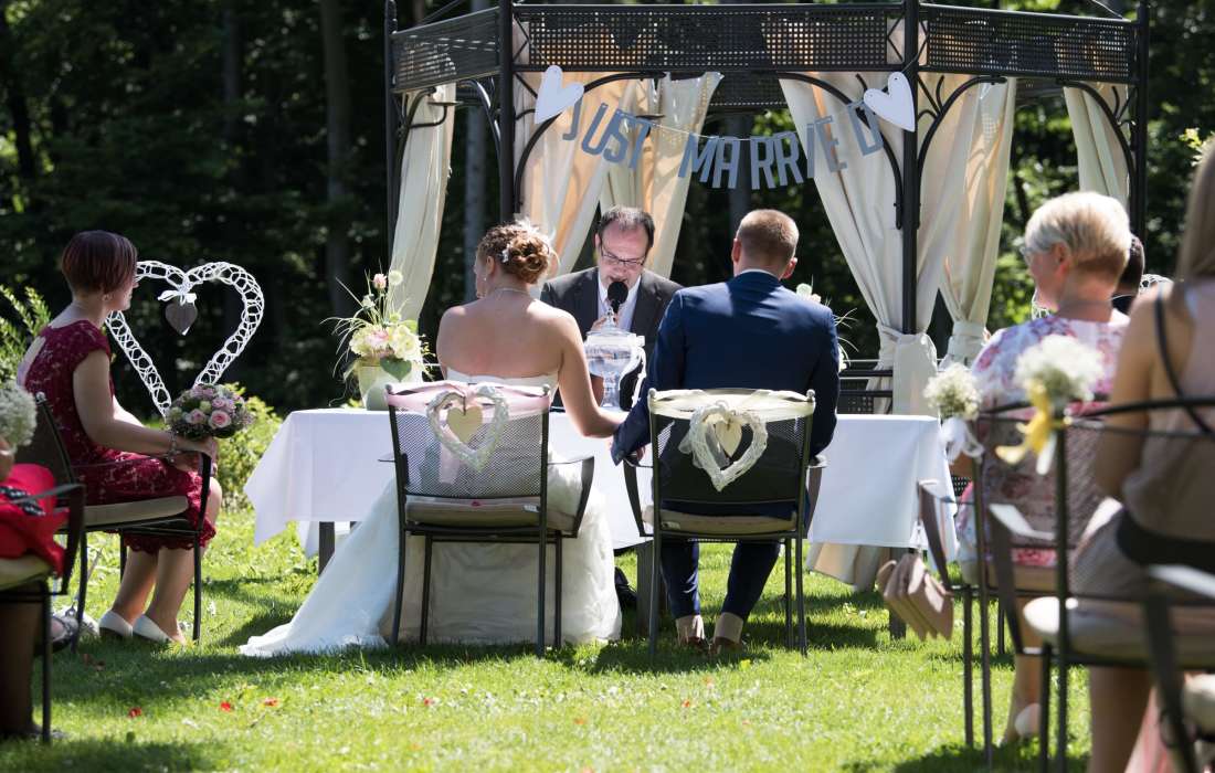 Die Zeremonie ist immer würdig gestaltet, gerne mit persönlicher Ansprache, Ihrer gemeinsamen Geschichte, Ihren Wünschen und Ihrer Lebensperspektive.