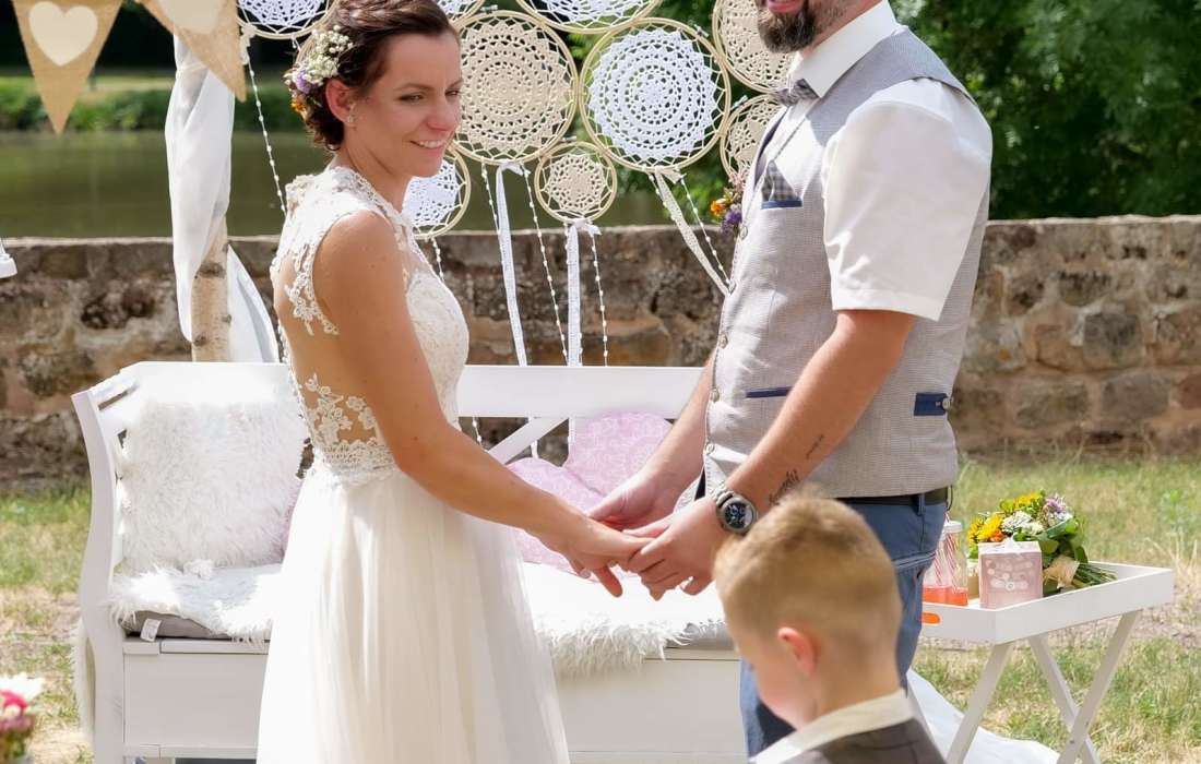 Bei einer Freien Trauung geht es um Euch, Eure Kennenlern- und Liebesgeschichte und um das, was Euch als Paar ausmacht ! Mit ganz viel Liebe zum Detail gestalten wir gemeinsam eure Zeremonie, die ihr euch für euren großen Tag wünscht. Eure Freie Trauung trägt eure Handschrift und soll der perfekte Startschuß für einen unvergesslichen Hochzeitstag sein. Wir legen großen Wert darauf, euch professionell und mit unserem Hochzeits-Knowhow durch eure Vorbereitungszeit zu begleiten und stehen euch mit Rat und Tat zur Seite. Bereits die Planungszeit soll zu einem unvergesslichen Erlebnis werden und euch Sicherheit für euren großen Moment geben, in dem ihr sicherlich ganz aufgeregt sein werdet! Mit uns könnt ihr an fast jedem Ort und zu fast jeder Zeit heiraten ! Und als Sahnehäubchen bieten wir euch noch weitere Dienstleistungen für euren großen Tag gleich aus einer Hand: