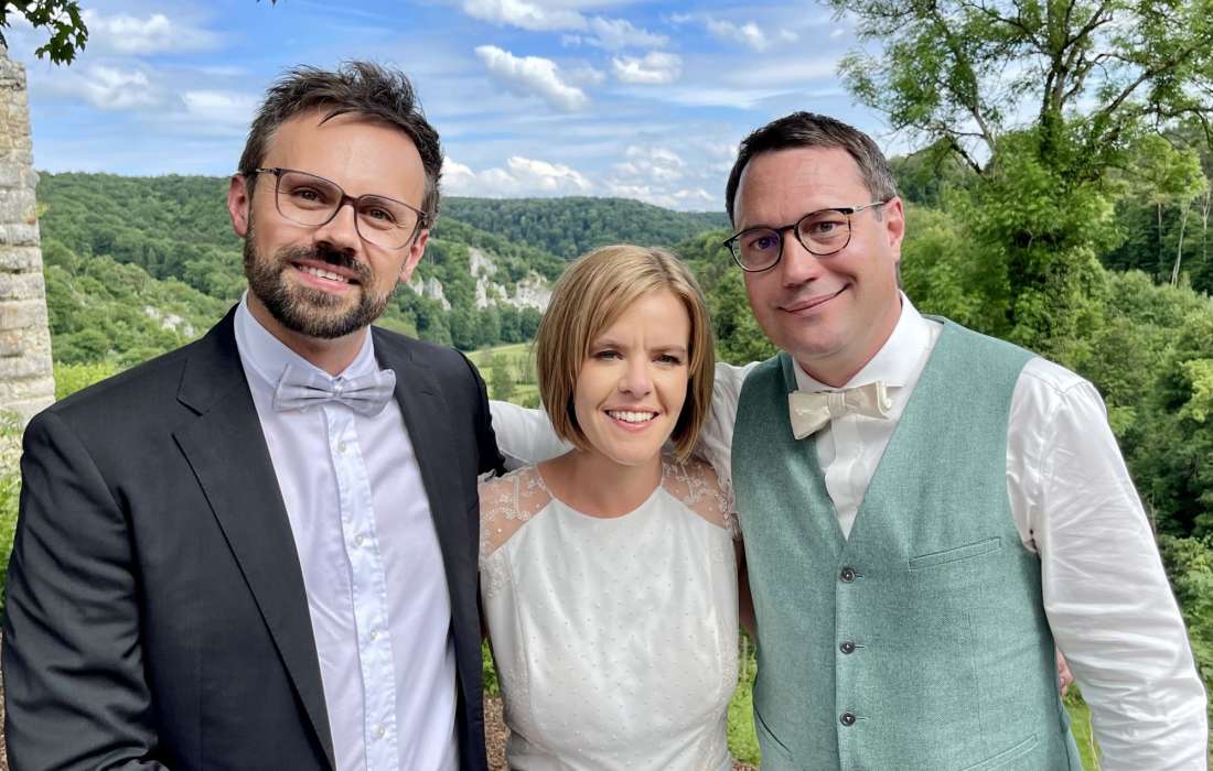 Lieber Martin, du hast unsere Trauung mit deiner humorvollen und professionellen Art sehr bereichert. Mit deinem entspannten Auftreten hast du eine Wohlfühlatmosphäre für uns und unsere Gäste geschaffen und dabei eine wundervolle Traupredigt gehalten. In uns hast du damit viel Vorfreude auf das Abenteuer der Ehe geweckt. Wir sind dankbar und schwelgen gerne in Erinnerungen.