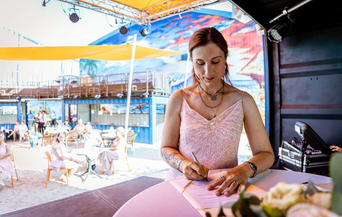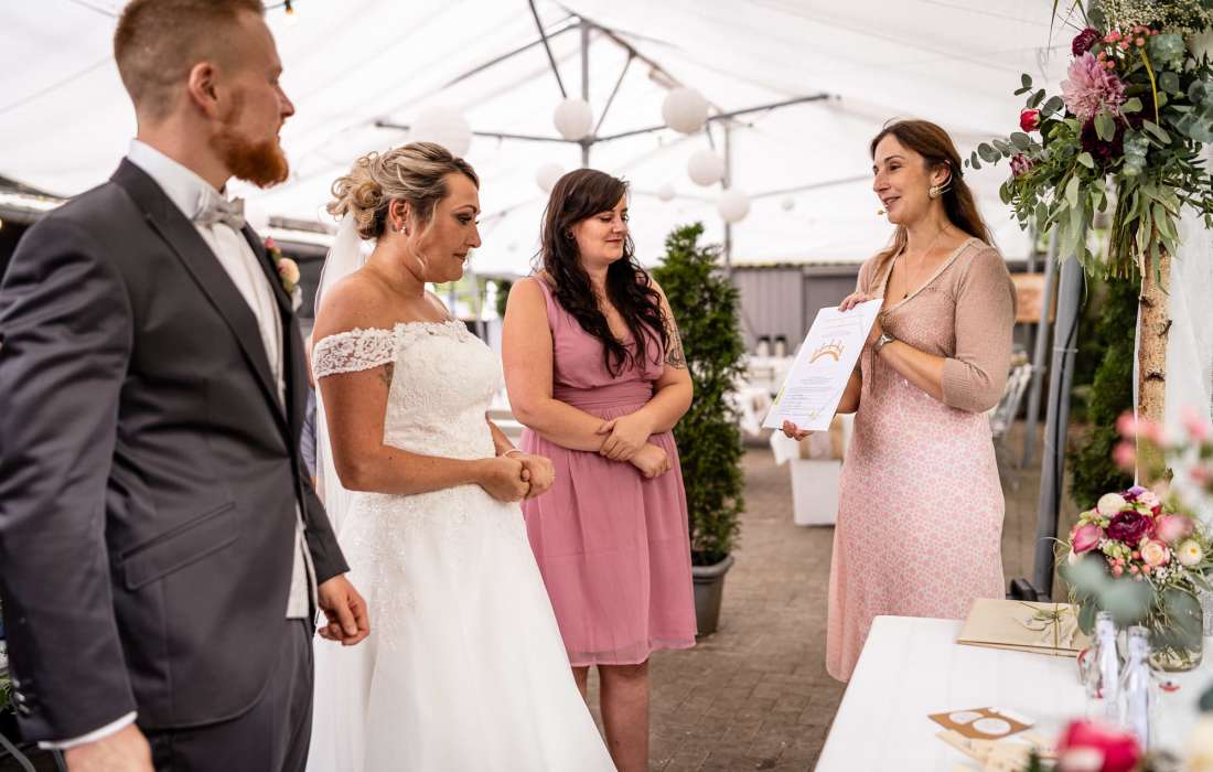 Liebe Barbara Christina, die Zeremonie mit den emotialen Worten und Beiträgen war so warmherzig und perfekt auf uns abgestimmt, dass der Tag für unsere Gäste und uns unvergesslich bleibt. Vielen Dank dafür und bleib so wie du bist! LG Sabrina und Sascha