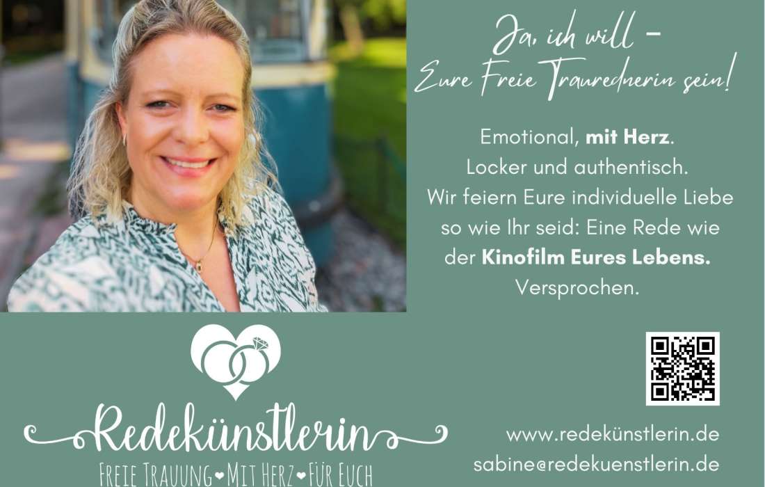 ich bin Sabine, eure Redekünstlerin für eure Freie Trauung.