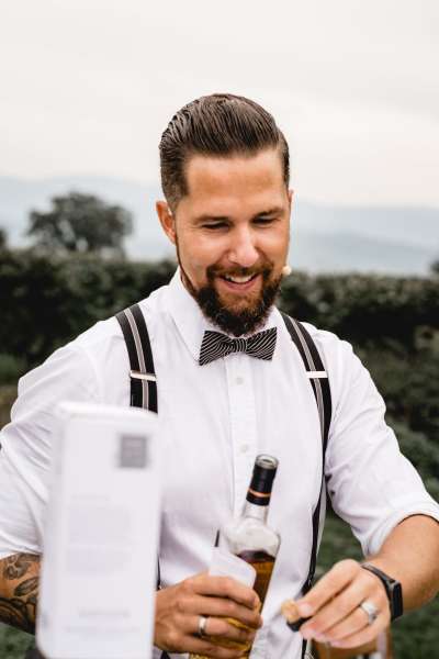 Ich erzähle eure Liebesgeschichte auf lockere, ungezwungene und unterhaltsame Weise, damit euer Hochzeitstag für immer in positiver Erinnerung bleibt. Und wenn ihr neugierig seid, wie Whisky eine lockere Atmosphäre in eure individuelle Trauung bringen kann, lade ich euch herzlich zu ein.