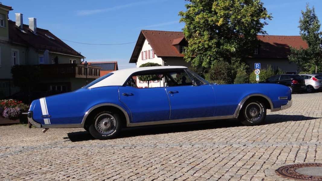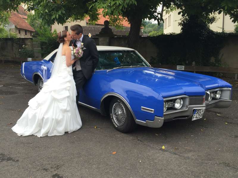 Oldsmobile Delta 88, mit riesigem 7 Liter V8-BIG-Block-Motor, leise säuselnd aber bei Bedarf kraftvoll wummernd, zugelassen für 6 Personen. Das charaktervolle Hochzeitsauto.