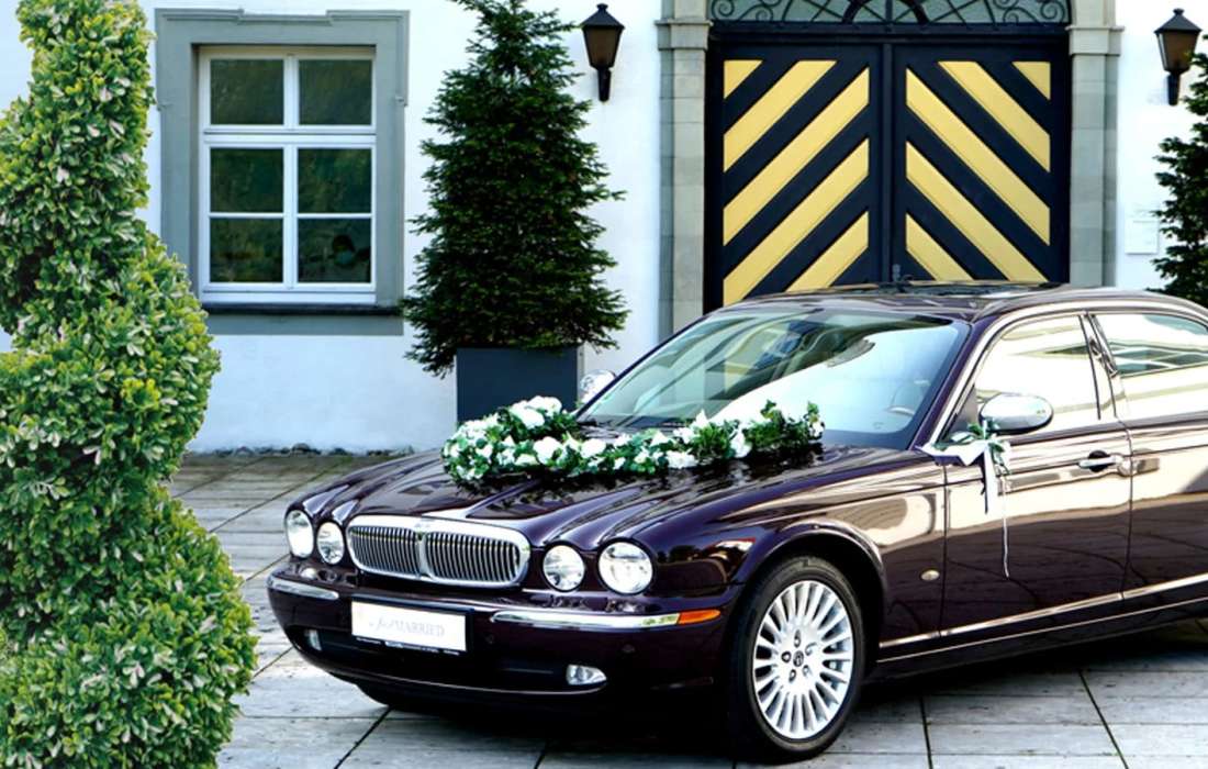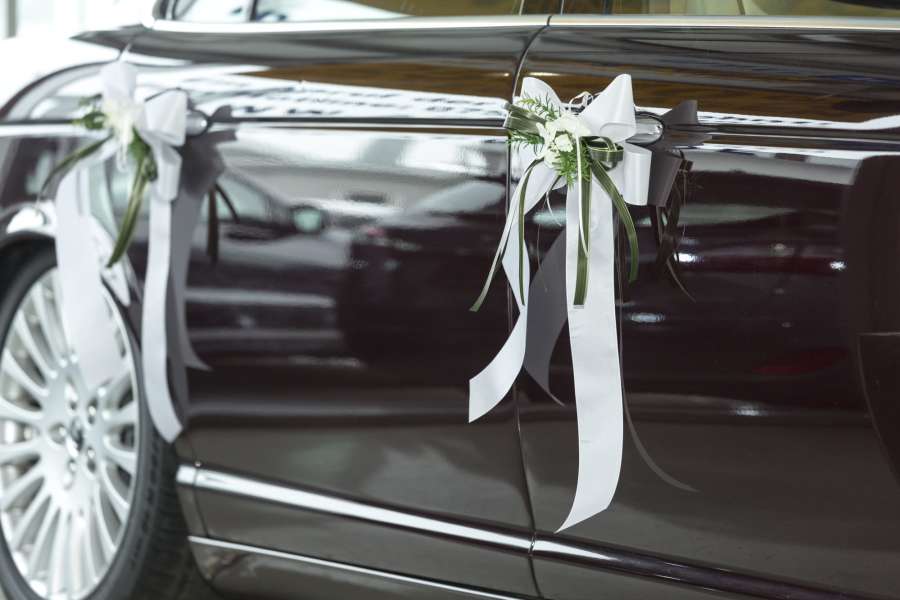 Mit dabei ist eine witterungsbeständige Blumendekoration für die Motorhaube und die Türgriffe, die einfach mit Saugnäpfen befestigt wird.