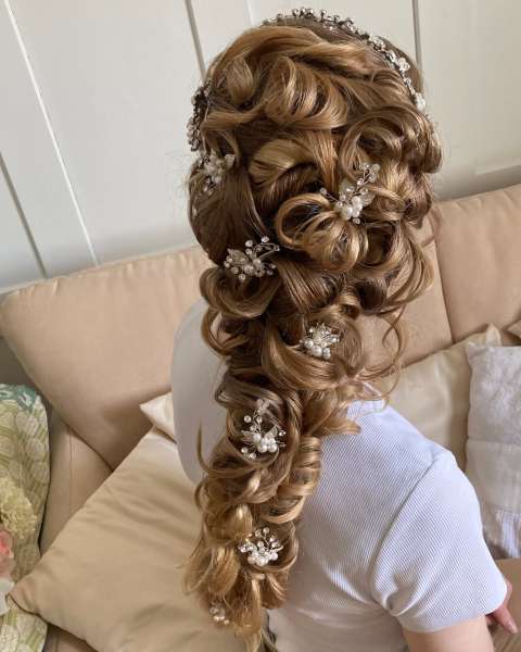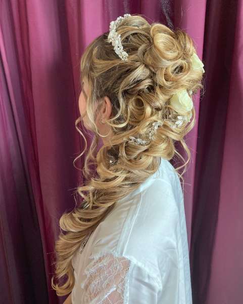 Meine Spezialität sind Hochsteckfrisuren und insbesondere Locken, die den ganzen Tag halten. Weil es nichts Schlimmeres und Peinlicheres gibt, als dass die Frisur nach wenigen Stunden auseinander fällt. Da ich ein Auge für das Schöne besitze, wird die Frisur auch von allen Seiten gut aussehen und auf die Kopfform der jeweiligen Kundin passen.