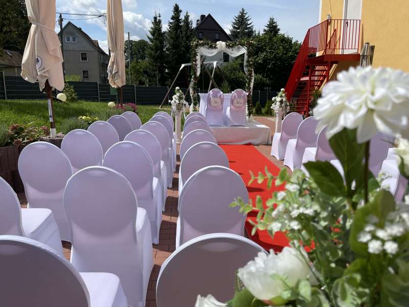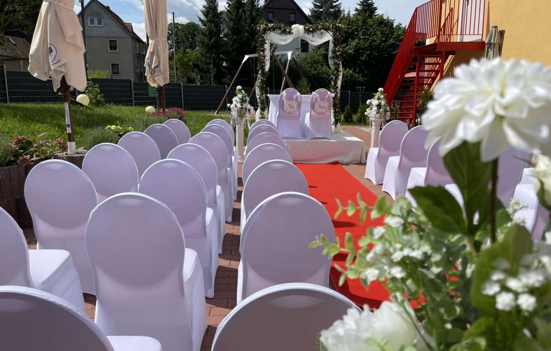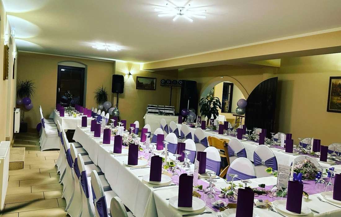 Für Feierlichkeiten stehen zwei Säle zur Verfügung. Ein kleiner Saal für 20 bis 50 Personen und ein großer Festsaal für 50 bis 150 Personen, welche individuell geschmückt werden können. Für die musikalische Ausgestaltung jeglicher Feierlichkeit stellt das Gasthaus ein professionelles technisches Equipment zur Verfügung. Im Außenbereich kann zudem eine festliche Hochzeitsterrasse mitgenutzt werden. Zudem ist Platz für Freie Trauungen vorhanden. Direkt am haus befindet sich ein großer Parkplatz.