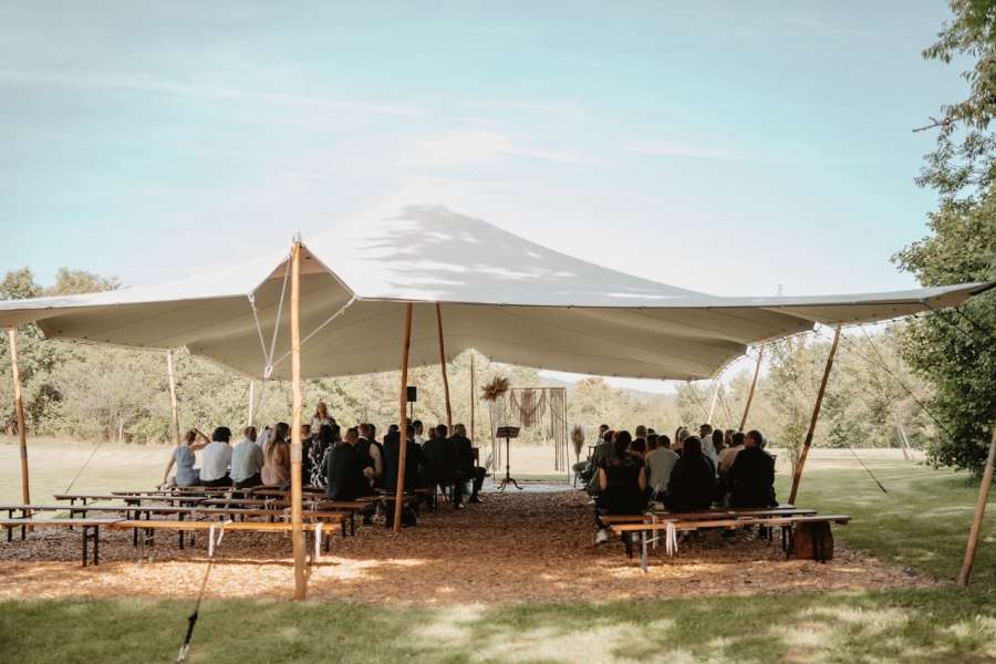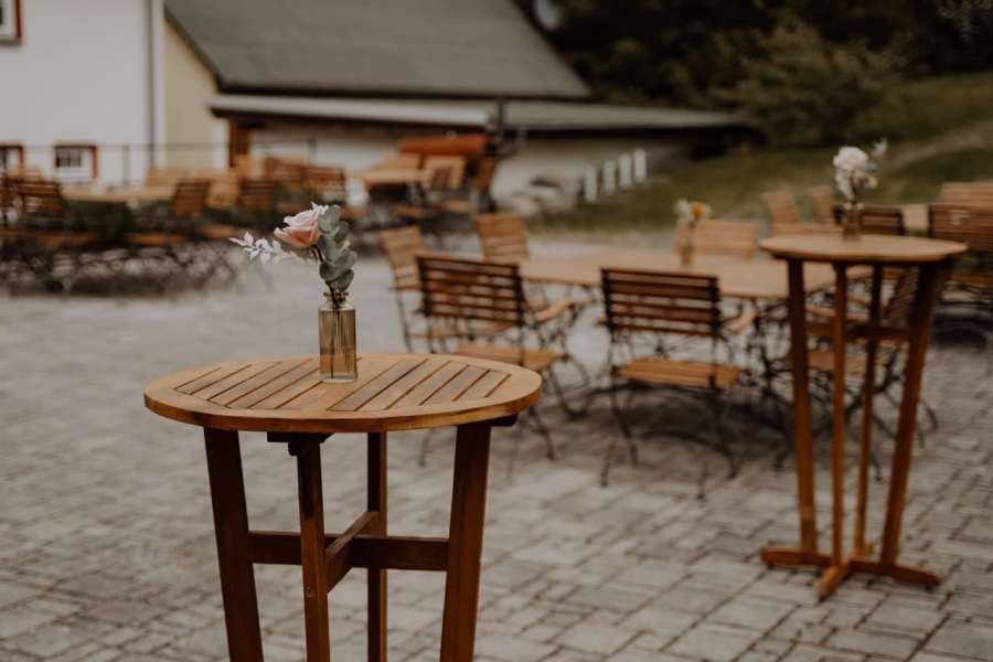 Freie Trauung unter freiem Himmel? Kein Problem – unser elegantes Stretch-Zelt schafft eine traumhafte Kulisse und schützt euch und eure Gäste zuverlässig bei jedem Wetter. Der großzügige Wäller-Saal bietet Platz für bis zu 120 Personen, und auch auf unserer Terrasse lässt es sich wunderbar feiern.