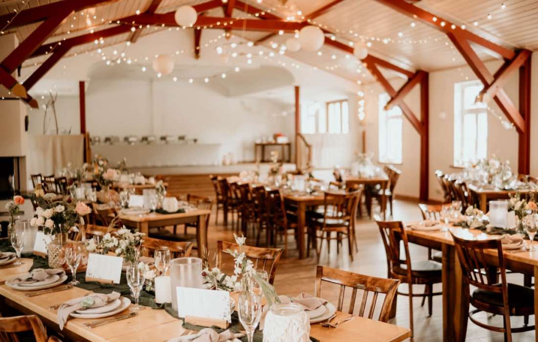Für das Catering sorgt ein festes, erfahrenes Partnerunternehmen, das euch kulinarisch rundum verwöhnt. Mit unserer transparenten Rundum-Sorglos-Pauschale habt ihr volle Kostenkontrolle – ganz ohne versteckte Gebühren. Und nach der Feier? Übernachten könnt ihr direkt bei uns in gemütlichen Landhauszimmern.