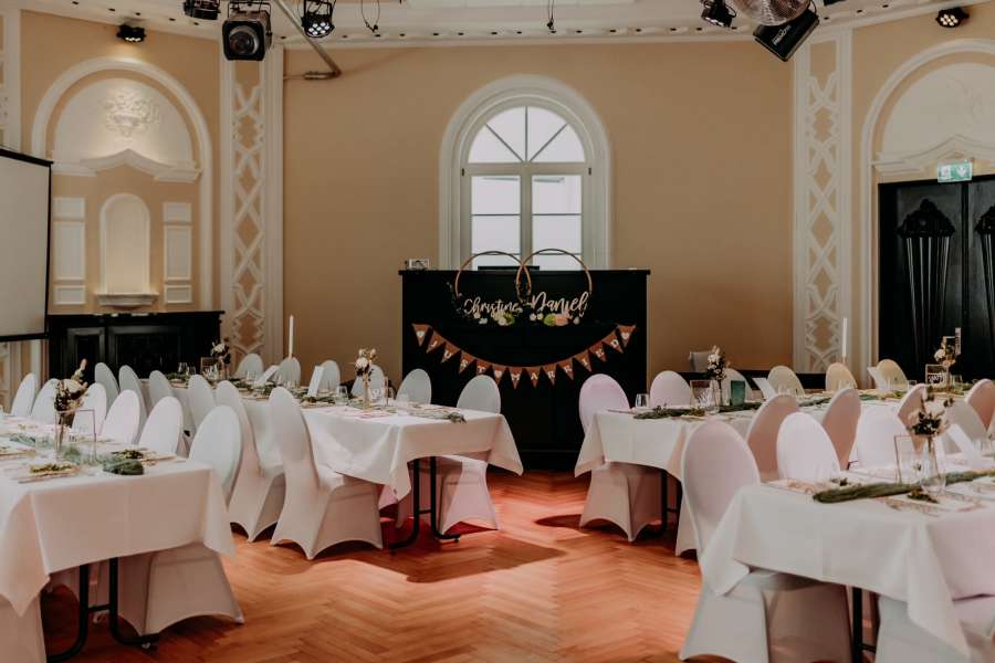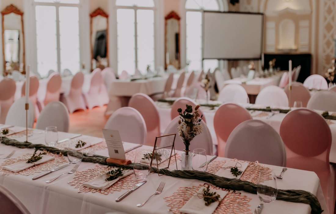 Unsere Eventlocation ist nicht einfach nur ein Veranstaltungsort - sie ist ein Ort voller Charme und Persönlichkeit. Der Spiegelsaal, ein barocker Schatz mit echtem Holzparkett, schafft eine einzigartige Atmosphäre, die eure Hochzeit unvergesslich macht. Die Liebe zum Detail in der Gestaltung dieses Raums wird euch und eure Gäste begeistern.