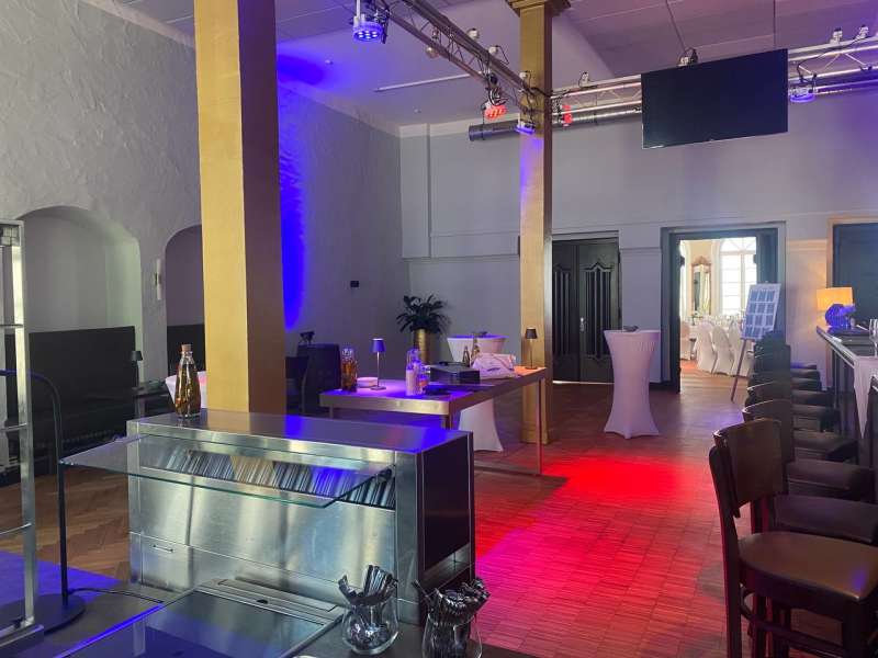 Alternativ steht euch auch der vordere Bereich unserer Location, der Bar-Bereich, zur Verfügung. Dieser Raum ist immer schön anzusehen, unabhängig von den Wetterbedingungen. Hier könnt ihr eure Gäste willkommen heißen und eure Feier in gemütlicher Atmosphäre beginnen, ganz gleich, ob die Sonne scheint oder der Himmel bewölkt ist.