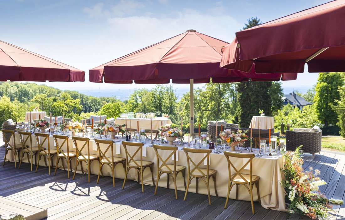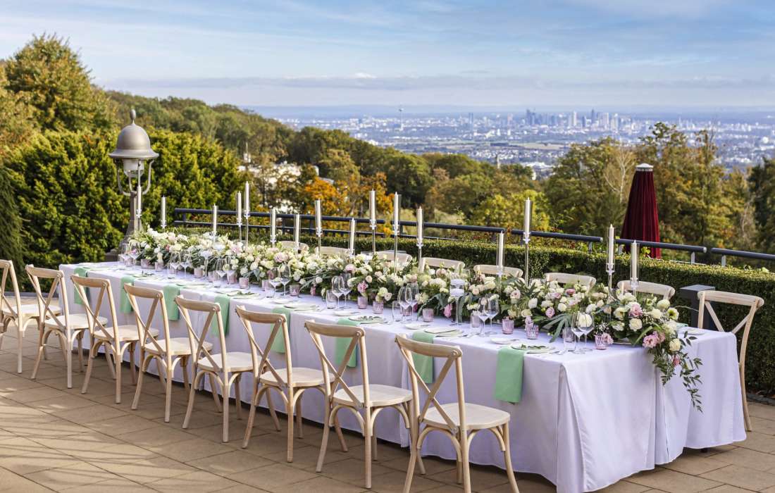 Finden Sie bei uns den perfekten Ort und einzigartigen Rahmen für Ihre Hochzeit über den Dächern der Mainmetropole. Wir stimmen Ihre Wünsche für diesen besonderen Tag ganz individuell ab, hört Ihnen zu, berät und unterstützt, damit Sie sich voll und ganz dem Wesentlichen widmen können. Von der zeitlichen Planung, über das perfekte Menü bis hin zur passenden Raumdekoration und Menükarte – wir kümmern uns darum.