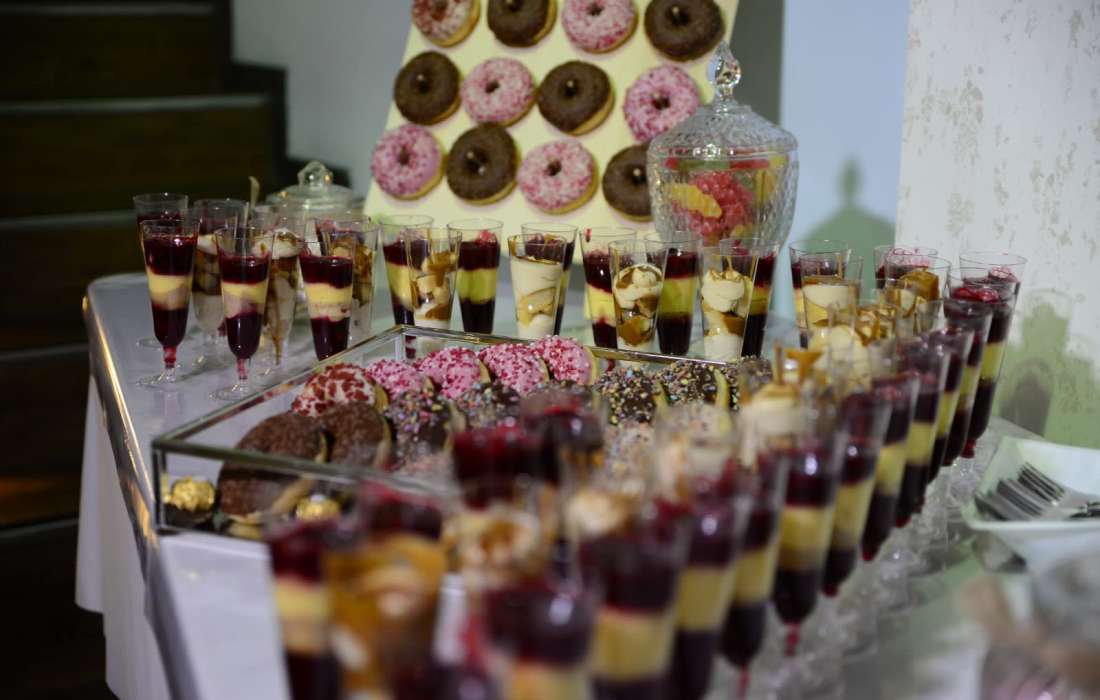 | Angebotene Verköstigung | Menü, Buffet, Kuchenbuffet, Fingerfood, Mitternachtssnack, Cocktails, Kaffeespezialitäten, Grillbuffet, Sektempfang, Foodtruck |
