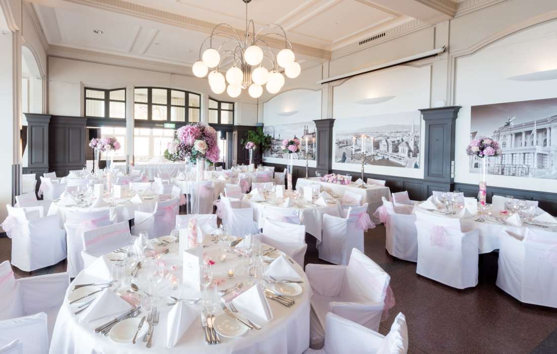 Wenn Sie wollen, können Sie sich hier auf dem Berg auch das Ja-Wort geben – draussen beim Aussichtspunkt oder in einer unserer Hochzeitsräumlichkeiten. Sie heiraten in einer Kirche und wollen lediglich bei uns feiern? Kein Problem. Mit der Uetlibergbahn gelangen Sie zur Station Uetliberg. Dort angekommen, beziehen Sie und eventuell die ganze Hochzeitsgesellschaft die Zimmer, bevor ein Apéro vor gigantischer Kulisse den Auftakt zum rauschenden Fest macht.