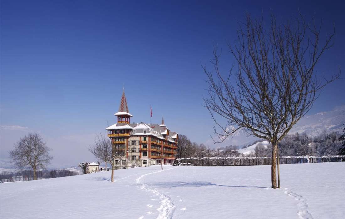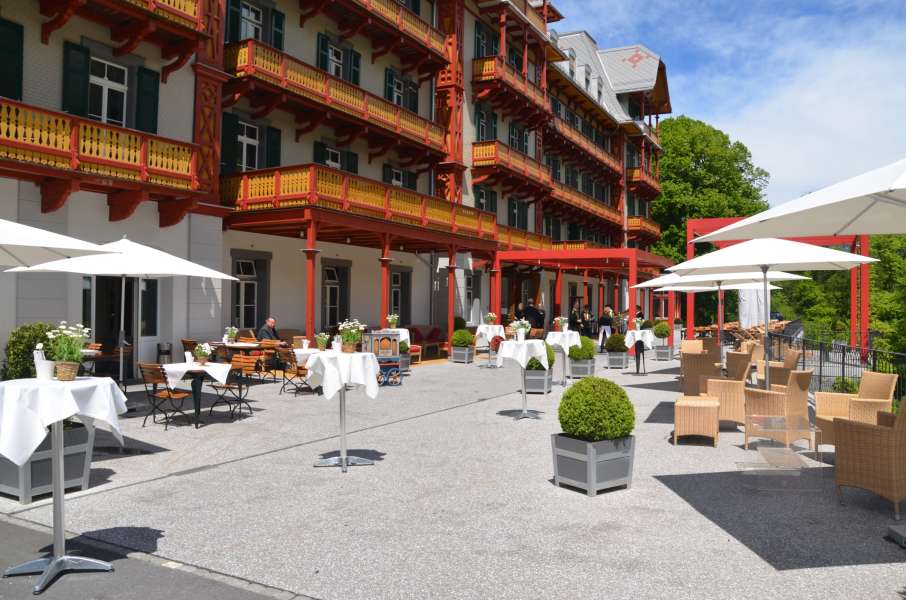 | Erklärung zur Gästezahl | Historischer Speisesaal (bis 150 Personen); Gartensaal (bis 80 Personen); Huetstock, Nünalphorn, Widderfeld (je bis 25 Personen); Großer Salon (bis 30 Personen); Kleiner Salon (bis 10 Personen); Damensalon (bis 16 Personen); Restaurant Veranda (bis 120 Personen) |