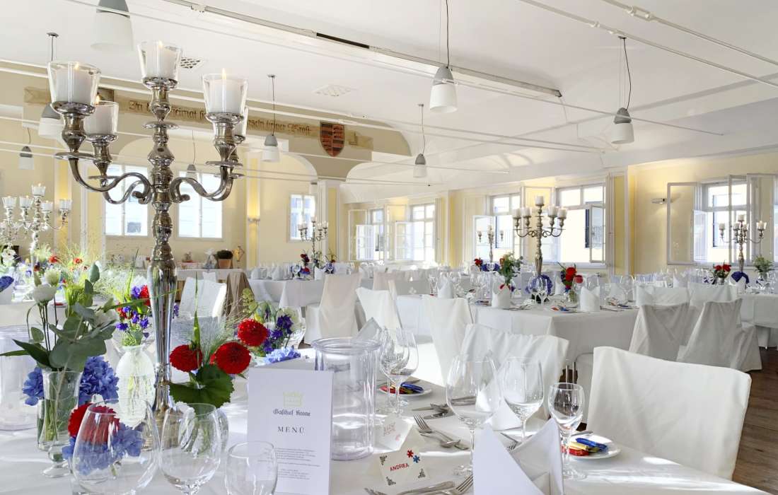 Mit dem romantischen Saal, dem gemütlichen Restaurant und der wunderschönen Gartenterrasse ist unser Haus der ideale Ort für Ihre Hochzeit, denn wir bieten für jede Gästeanzahl die passende Räumlichkeit. Nur wenige Gehminuten entfernt gibt es gleich mehrere Traumöglichkeiten.