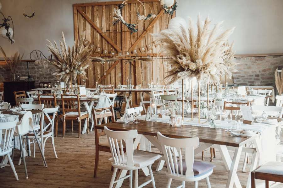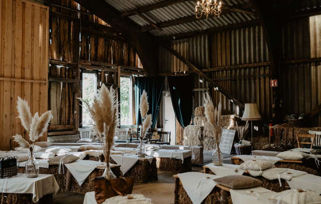 Unsere Eventscheune ist geeignet von 35 bis zu 120 Personen mit festen Sitzplätzen und einer zusätzlichen Tanzfläche.