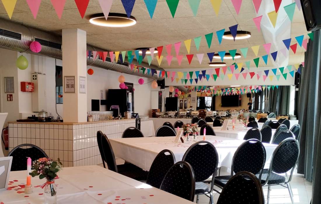 Unsere vielseitige Räumlichkeit bietet Dir die perfekte Basis, um Deine Hochzeitsfeier ganz nach Deinen Vorstellungen zu gestalten. Wir bieten viel Flexibilität und Freiräume, damit die Gestaltung ganz nach Deinen Wünschen erfolgen kann. Wichtig ist, dass es Euch gefällt.
