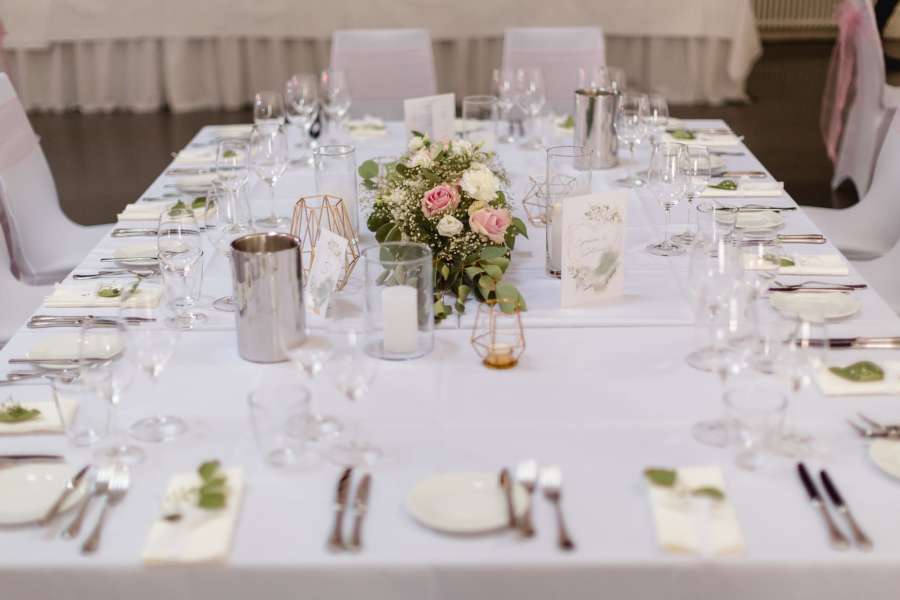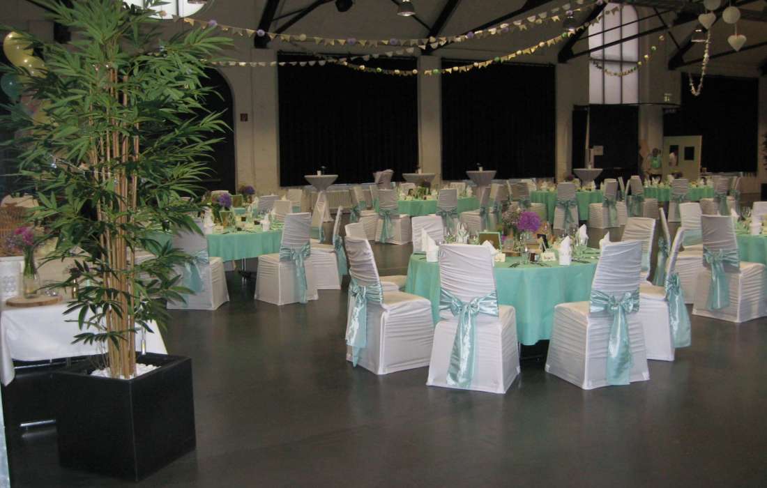 Damit Sie in stimmungsvoller Atmosphäre Ihr Fest genießen können, leuchten wir den Saal mit Schein- werfern nach Ihren Wünschen farbig aus. Vom Haus aus stehen Grünpflanzen zur erfügung. Weitere Dekoration können Sie gemäß den Vorgaben der gültigen Versammlungsstättenverordnung für Baden-Württemberg selbst vornehmen.