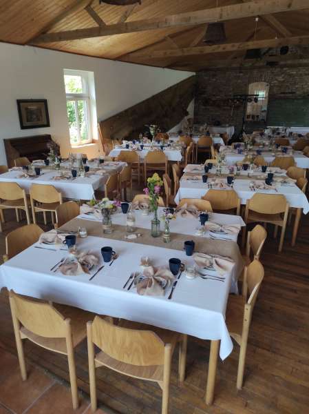 Wir haben verschiedene Räume für alle Feierlichkeiten anzubieten und auch an Übernachtungsmöglichkeiten in Ferienwohnungen und Häusern mangelt es uns nicht.