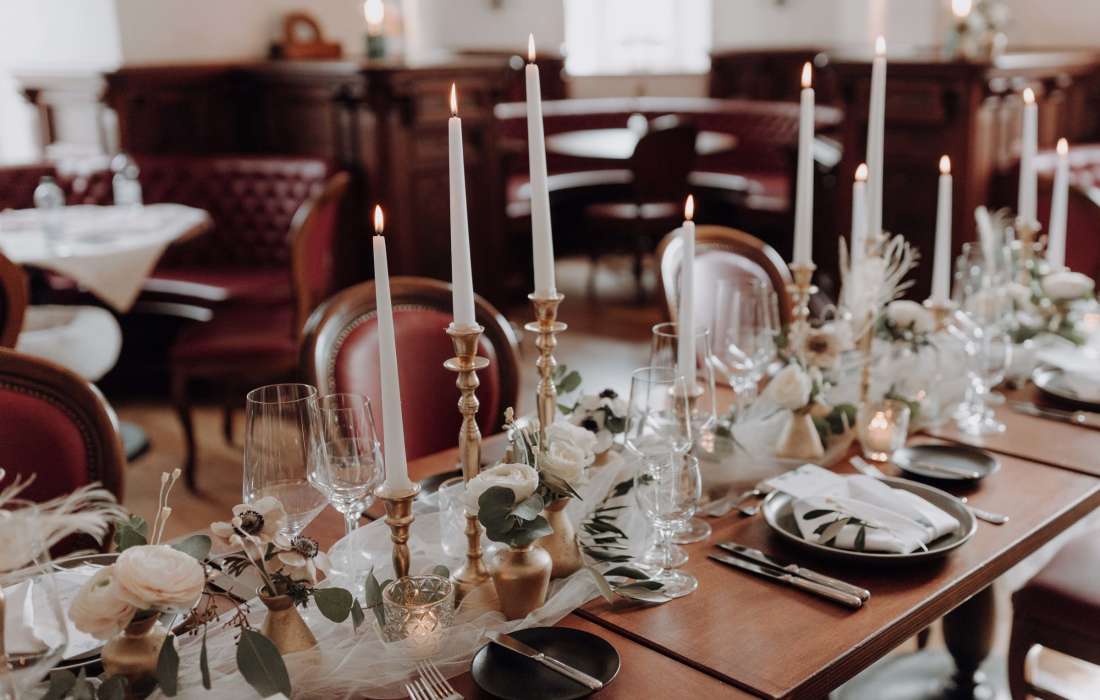 Das historische Gemäuer und das warme Licht unseres Saals schaffen eine festliche Grundstimmung für Ihre Feierlichkeiten im Rahmen der Familie. Für kleine Gesellschaften eignet sich auch das Rechberg-Séparée.