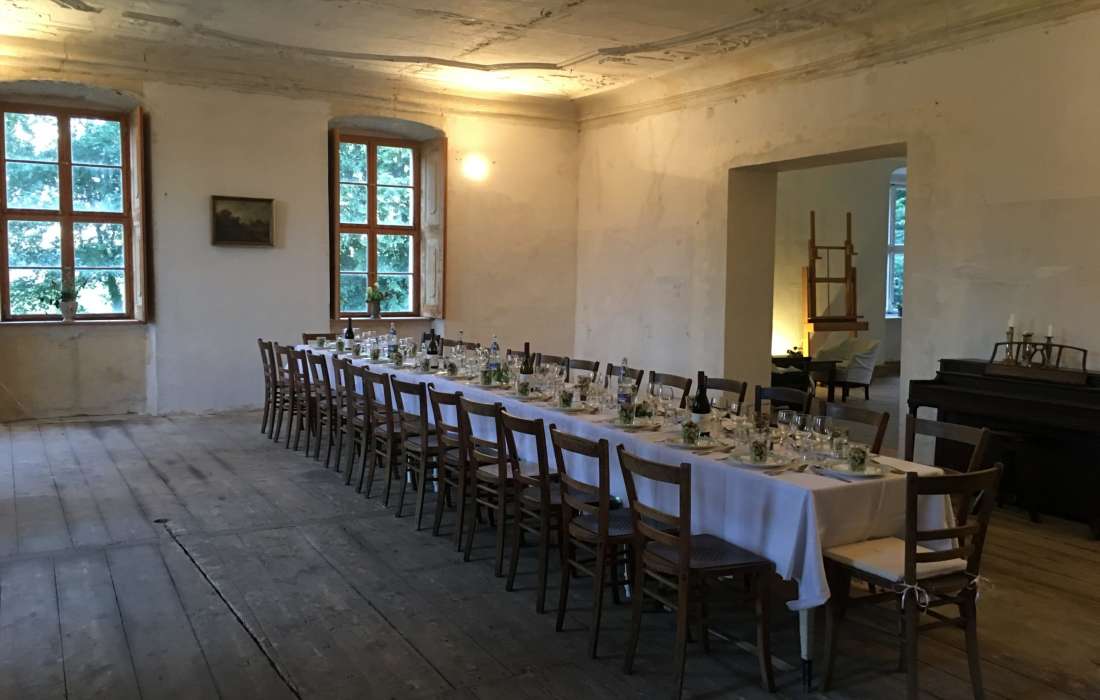 In den Sommermonaten steht euch das Haus und sein großzügiger Garten für Hochzeits- und Familienfeiern zur Verfügung. Standesamtlich könnt ihr im romanischen und benachbarten Schloss Gahry vor dem Schlosssee heiraten.