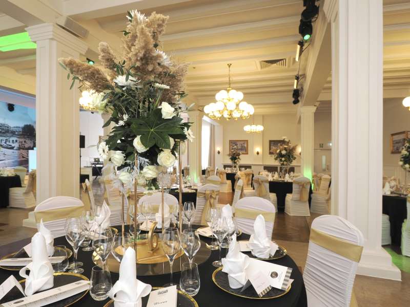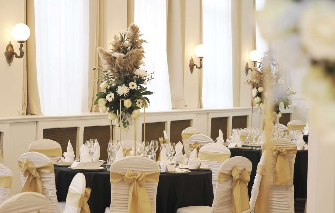 Der Festsaal im Schlösschen Villa Esplanade lädt ein zu ganz großen Festen! So bleiben Hochzeit, Firmenjubiläum oder Geburtstagsparty mit Sicherheit in Erinnerung!