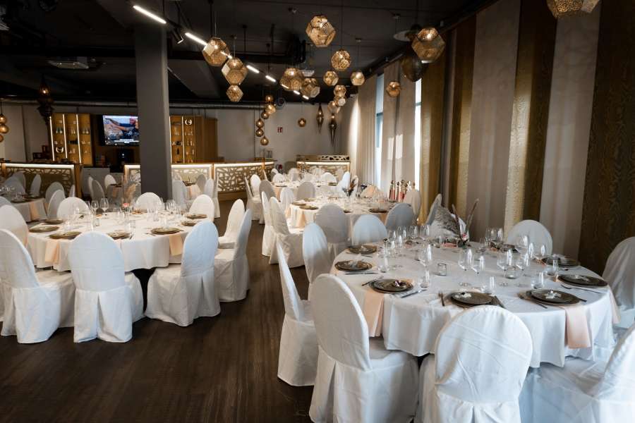 Feier mit bis zu 150 Personen an fertig eingedeckten Banketttischen und lass Dich von unserem Interieur und unserer Ausstattung verzaubern. Wir garantieren Dir und Deinen Gästen bereits beim Eintreten in die Location einen „Wow Effekt“. Buchen jetzt deinen Besichtigungstermin!