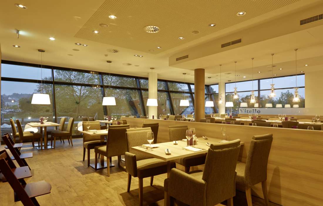 Sonnenterrasse bis 200 Gäste, drei Veranstaltungsräume bis 130 Hochzeitsgäste und unser Restaurant mit 70 Sitzplätzen.