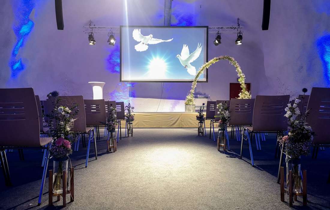 Unser hauseigenes Event-Team kennt den Stollen gut und kann flexibel auf Ihre Wünsche eingehen. Wir helfen gerne mit kreativen Ideen und setzen alles daran, dass Ihr Hochzeitsfest Ihrem Motto entsprechend und farblich abgestimmt inszeniert wird.