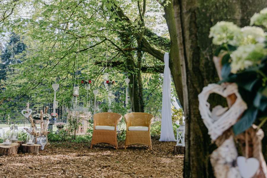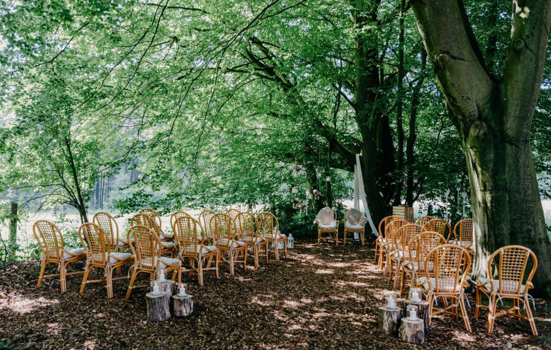 Umgeben von wunderschönen Bäumen und einem zauberhaften Blätterdach, haben Sie die Möglichkeit ihre Zeremonie bei uns zu gestalten.