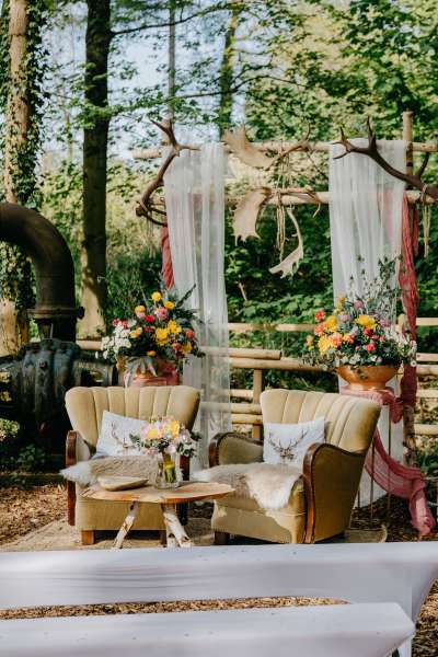 Inspirieren Sie uns mit ihren Dekorationswünschen und wir machen eine wunderschöne Hochzeit daraus. Wählen Sie aus verschiedenen Orten im Wald ihren Hochzeitsplatz aus.