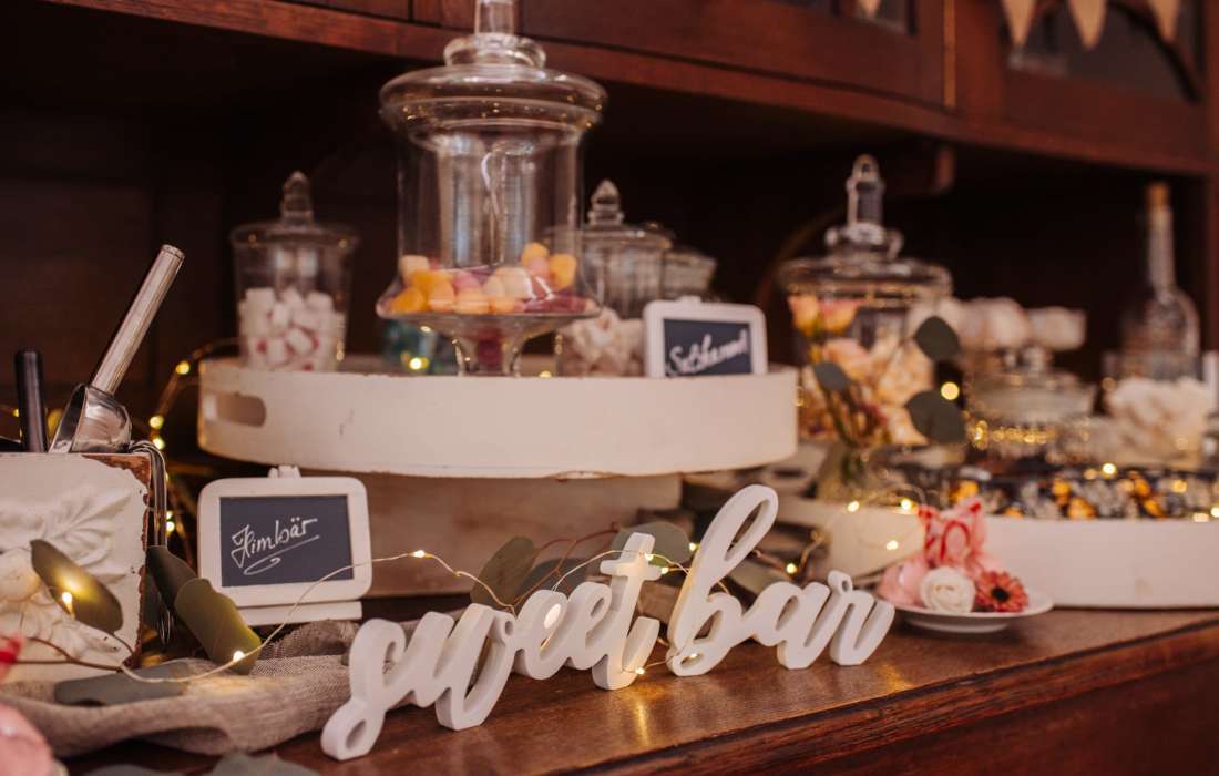 | Angebotene Verköstigung | Cocktails, Fingerfood, Kuchenbuffet, Mitternachtssnack, Sektempfang, Kaffeespezialitäten, Buffet |