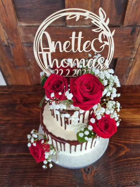 Jede Torte ist ein Unikat und wird mit Liebe zum Detail ganz individuell angefertigt. Sie wird nicht nur optisch, sondern auch geschmacklich ein Highlight auf der Hochzeit sein.