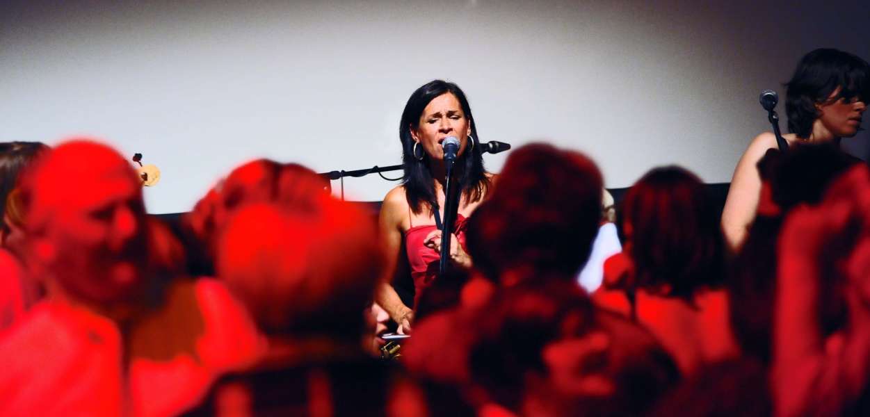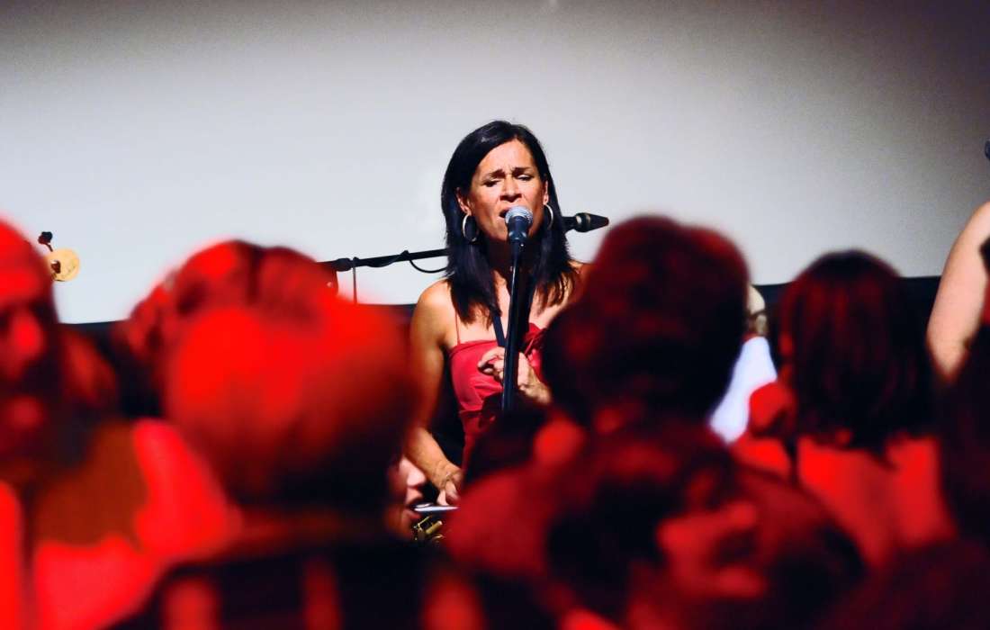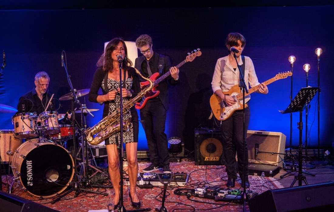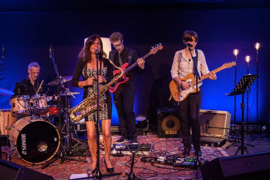 Saxofonistin Birdy Jessel und Band