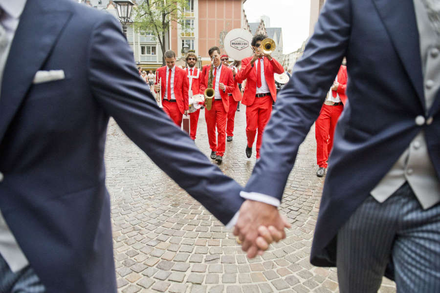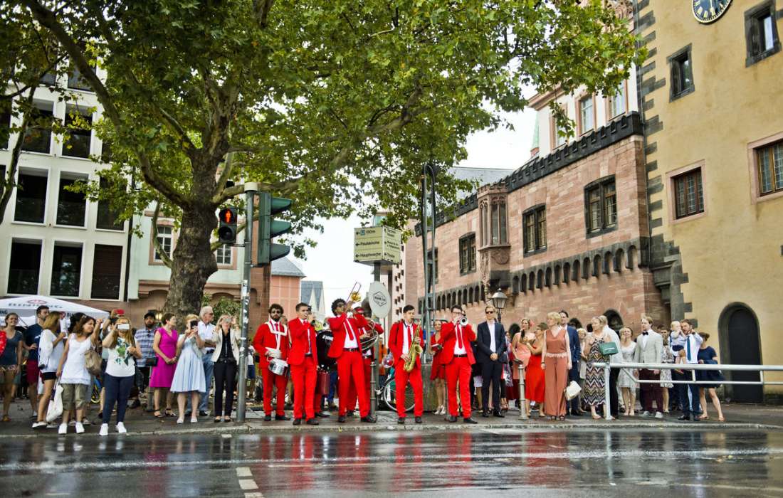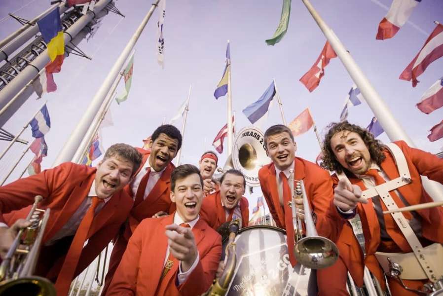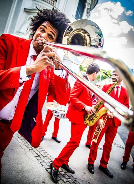 Brassband & Walking Act! Die mit den roten Anzügen!