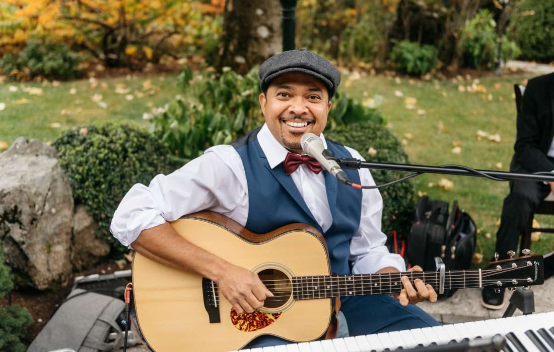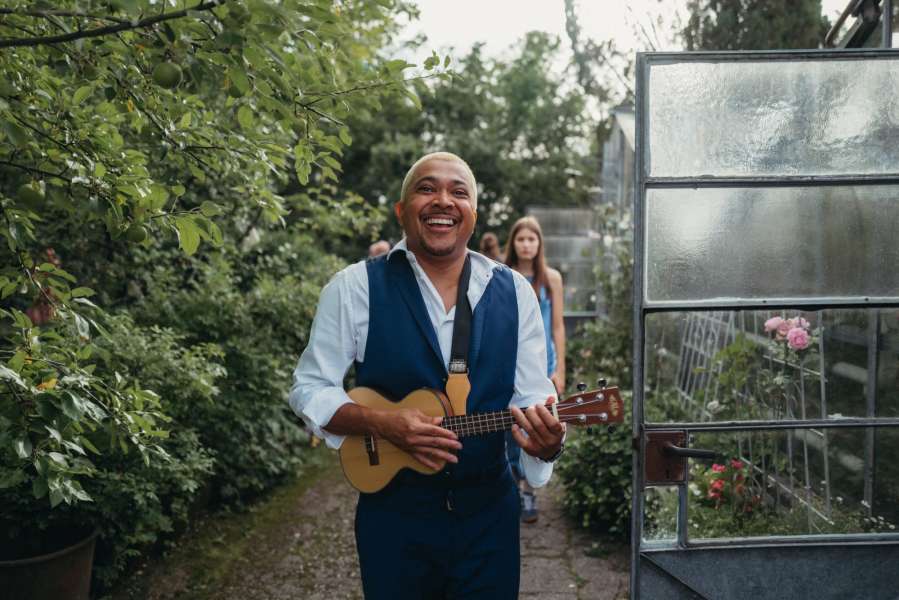Von den berührenden Klängen bei der Trauung und der entspannten Stimmung beim Sektempfang bis zur energiegeladenen Feier am Abend begleite ich euch durch den gesamten Tag. Mit einem individuell abgestimmten Repertoire aus romantischen Songs, Lieblingsliedern und Partymusik sorge ich dafür, dass jede Phase eurer Feier lebendig wird und die Tanzfläche in Bewegung bleibt.